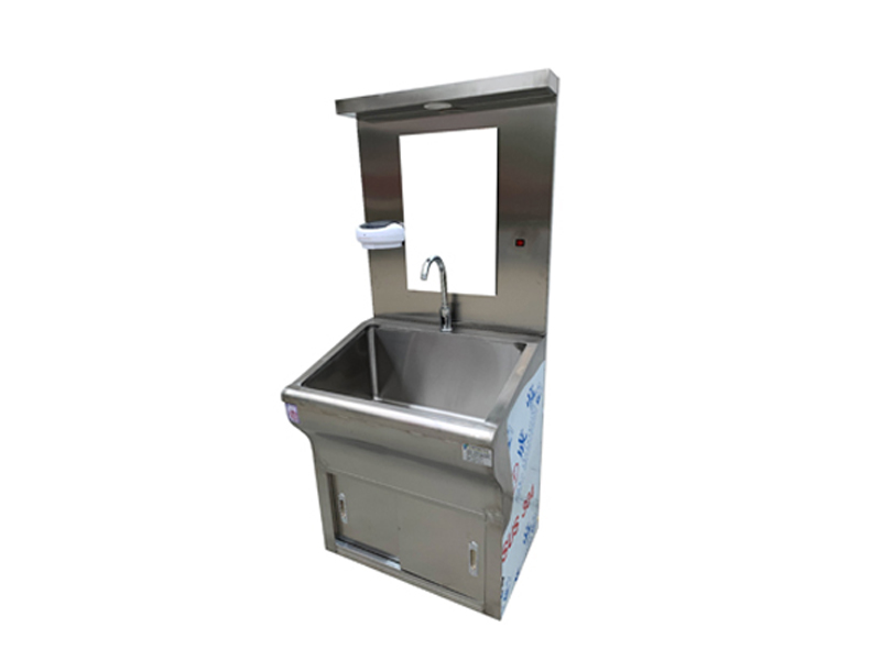不銹鋼潔凈洗手池分為一人位、雙人位、三人位、四人位等,可根據客戶(hù)要求定制。無(wú)塵室不銹鋼洗手池、洗手槽采用SUS304不銹鋼制作,中間特殊靜音處理。槽身以人體工程學(xué)設計洗手時(shí)水花不易濺到身上。鵝頸型水龍頭,光控感應式出水,可靠。配紅外線(xiàn)感應給皂液裝置,醫用洗手池可選裝自帶40L美的電熱水器,自由設定出水溫度,一年四季可提供恒溫水,水龍頭感應自動(dòng)出水,每個(gè)洗手位帶獨立鏡燈和鏡子,洗手槽采用特制的坡度設計,可有效防止水濺到洗手池外,各水嘴獨立設置,不影響其它水嘴的使用。