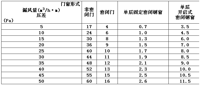 表7 圍護結構單位長(cháng)度縫隙的滲漏風(fēng)量