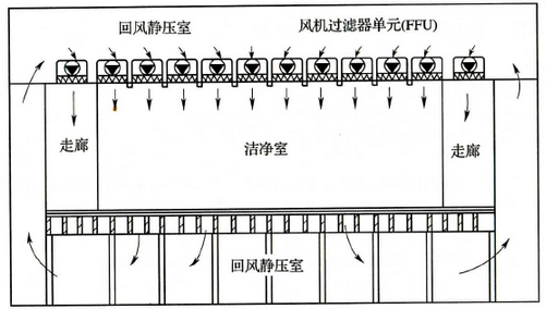 圖2 風(fēng)機過(guò)濾器單元送風(fēng)方式(FFU)示意圖