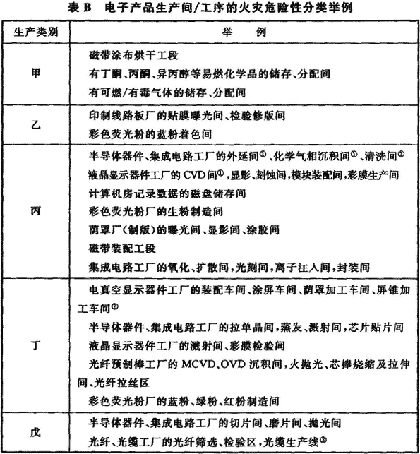 附錄B 電子產(chǎn)品生產(chǎn)間/工序的火災危險性分類(lèi)舉例