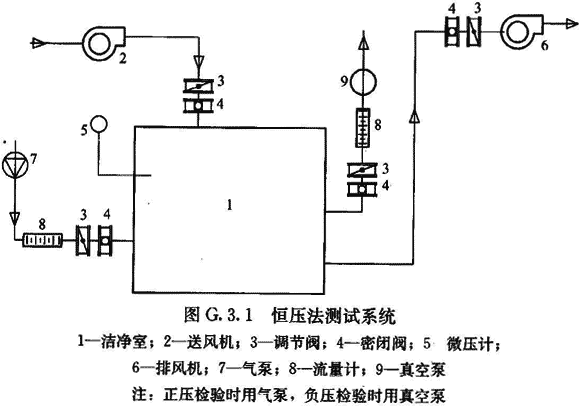 G.1.1 保持室內為正壓或負壓均能滿(mǎn)足檢驗要求,但條件允許時(shí),負壓潔凈室宜用正壓檢驗,正壓潔凈室宜用負壓檢驗。