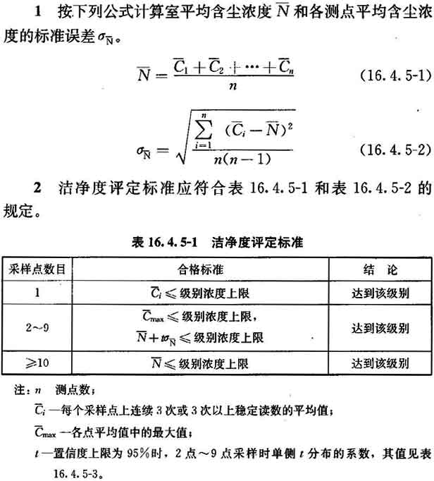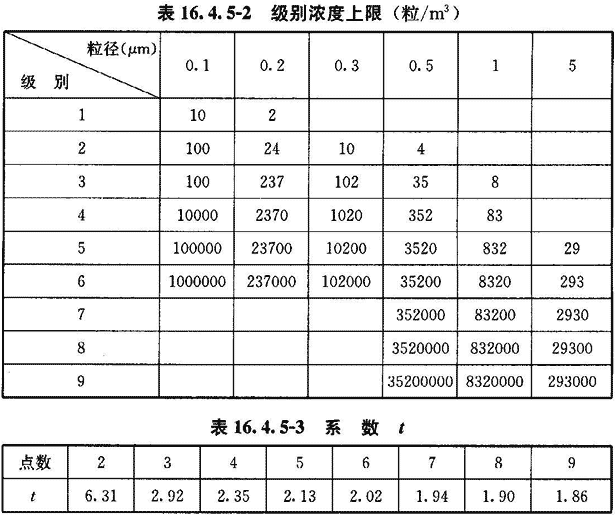 16.4.5 空氣潔凈度級別應按附錄E檢驗微粒計數濃度,然后按以下程序計算出空氣潔凈度級別并評價(jià)。
