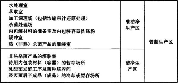 表1 一般食品生產(chǎn)車(chē)間管制生產(chǎn)區