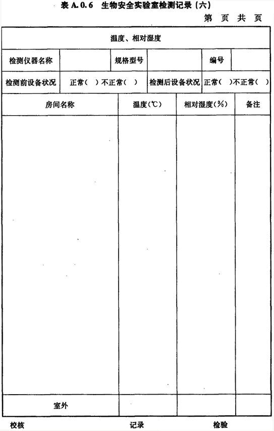 A.0.6 生物安全實(shí)驗室房間溫度、相對濕度的檢測應按表A.0.6進(jìn)行記錄。