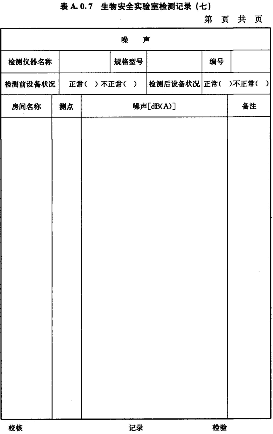 A.0.7 生物安全實(shí)驗室房間噪聲的檢測應按表A.0.7進(jìn)行記錄。