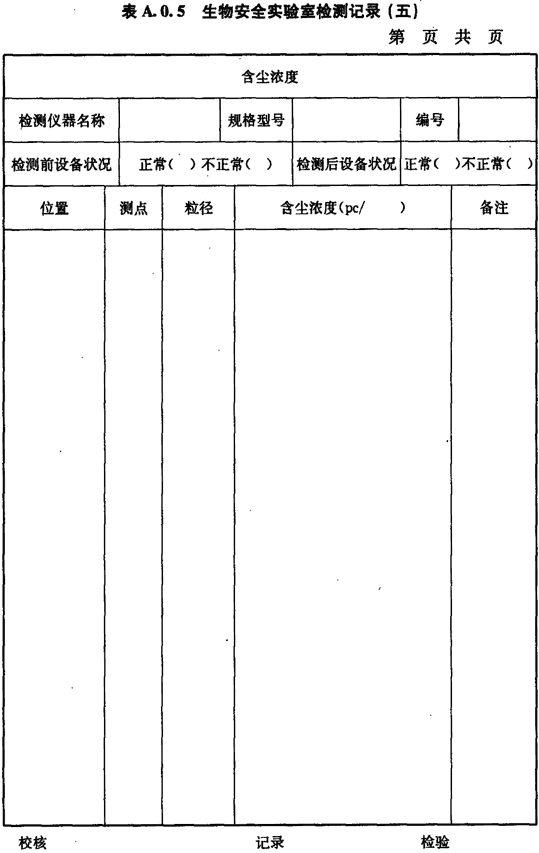 A.0.5.生物安全實(shí)驗室房間含塵濃度的檢測應按表A.0.5進(jìn)行記錄。