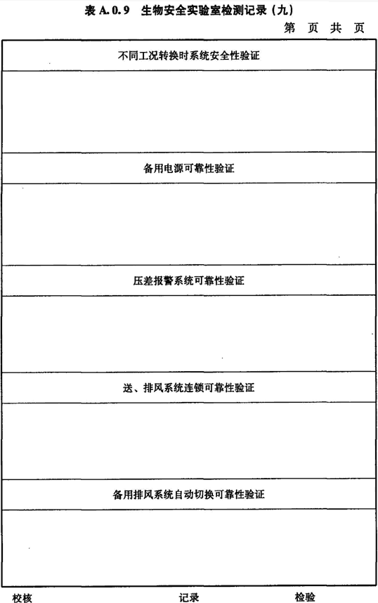 A.0.9 生物安全實(shí)驗室配電和自控系統的檢測應按表A.0.9進(jìn)行記錄。