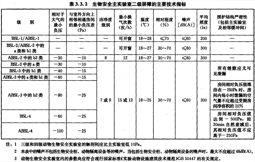 3.3 生物安全實(shí)驗室的技術(shù)指標