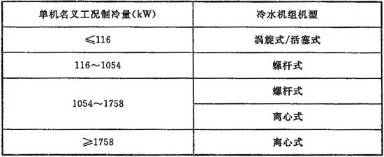 9.2.2 選擇水冷電動(dòng)壓縮式冷水機組機型時(shí),宜按表9.2.2內的制冷量范圍,經(jīng)過(guò)性能價(jià)格綜合比較后確定。