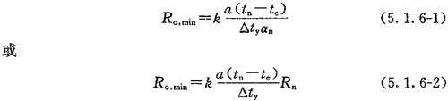 5.1.6 除外窗、陽(yáng)臺門(mén)和天窗外,設置全面供暖的建筑物,其圍護結構的最小傳熱阻不得小于按下列公式計算所得值: