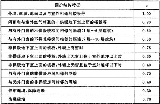 α——圍護結構溫差修正系數,按本規范表5.1.6-3采用;