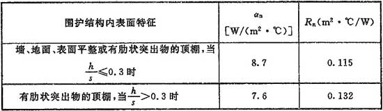 表5.1.6-5 內表面換熱系數αn和換熱阻值Rn