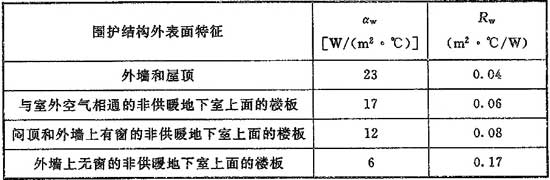 表5.2.4-1 外表面換熱系數αw和換熱阻Rw值