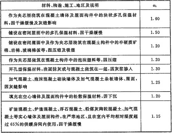 表5.2.4-2 材料導熱系數的修正系數αλ