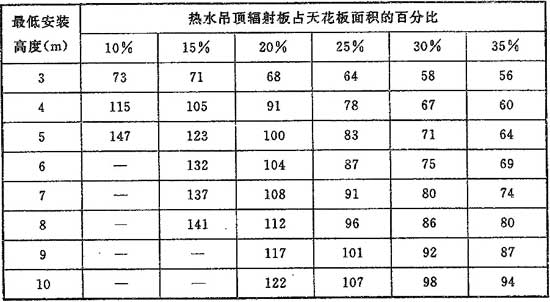 局部輻射供暖區面積與房間總面積的比值f | f≥0.75 | 0.55 | 0.40 | 0.25 | ≤0.20 |