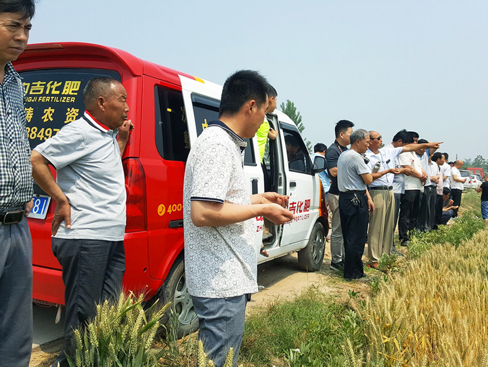 中吉專(zhuān)家顧問(wèn)組對示范田進(jìn)行現場(chǎng)測產(chǎn),預測每畝產(chǎn)量在1500斤左右,專(zhuān)家預估,此示范田如果進(jìn)行澆水、噴施葉面肥、預防干熱風(fēng)、增加千粒重,產(chǎn)量可達到1700-1800斤/畝。眾人對結果連連稱(chēng)贊:“中吉化肥涂層一次肥就是不一般”。